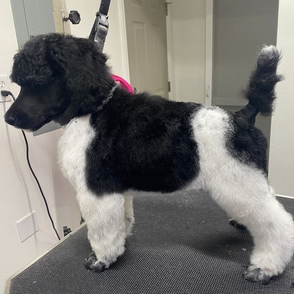 Am Ch BPIS UCH Poetry's By Special Request -- "Whitey" is a beautiful white male with an amazing temperament with med/ high drive. He brings a very square short back, fantastic rear, and more underjaw to this pairing. Owned and Loved by Poetry Poodles in Texas. https://ofa.org/advanced-search/?appnum=1779958