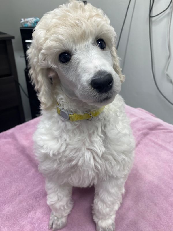This young lady is headed off to North Carolina! Formerly Sahara - she is a beautiful cream parti girl with lots of kisses to give. She will be residing with Hannah who is a groomer, hiking partner, and possible competition groomer. She is looking forward to dipping her toes into some creative grooming as well. Sahara is looking forward to meeting her new kittie friends and being a shop girl!